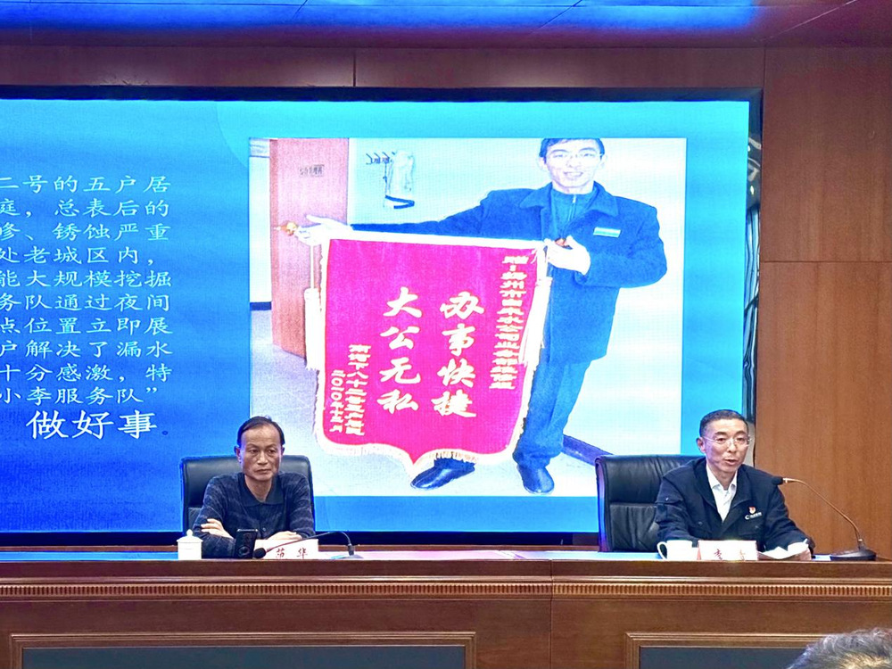 李青隊(duì)長(zhǎng)通過(guò)分享多年實(shí)際工作經(jīng)驗(yàn)和心得感悟,帶領(lǐng)大家學(xué)習(xí)勞模工匠精神,通過(guò)從“小李服務(wù)隊(duì)”的由來(lái)、“五力工作法”,寒冬臘月3萬(wàn)支水表的更換等具體事例,講述了三十多年如一日為民辦實(shí)事,解難題的經(jīng)歷?,F(xiàn)在“用水有困難,小李幫你辦”不僅是揚(yáng)州老百姓掛在嘴邊的一句話,更是一份信任、責(zé)任和榮譽(yù)。