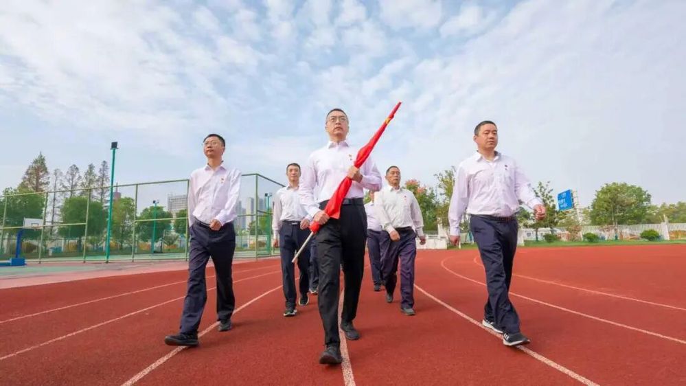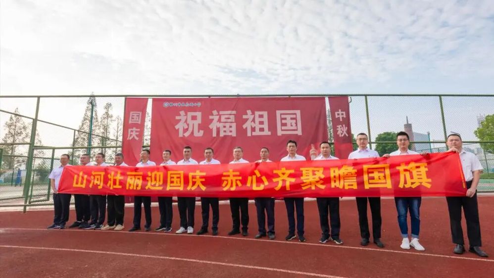 “山河壯麗迎國慶,赤心齊聚瞻國旗?!滨r紅的標語在晨光中格外醒目,道出了全場人員的心聲。仰望國旗,大家思緒萬千,仿佛看到了祖國七十六載波瀾壯闊的發(fā)展歷程,感受到了民族復興的強勁脈搏。