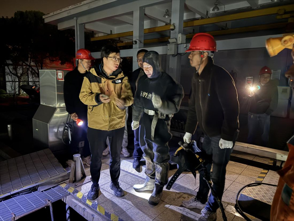 碰接施工正式開始前,潔源公司再次開展現(xiàn)場(chǎng)技術(shù)交底,除重申作業(yè)規(guī)范與安全準(zhǔn)則外,結(jié)合現(xiàn)場(chǎng)實(shí)際,對(duì)夜間照明布局、施工設(shè)備就位精度、周邊交通動(dòng)線規(guī)劃等細(xì)節(jié)進(jìn)行了最終確認(rèn)與動(dòng)態(tài)微調(diào),幫助各關(guān)鍵崗位人員對(duì)作業(yè)任務(wù)形成清晰統(tǒng)一共識(shí)。作業(yè)開始后,各施工小組嚴(yán)格按照既定方案推進(jìn)工作,為搶抓夜間進(jìn)水量相對(duì)較低的窗口期,同步開啟5個(gè)施工作業(yè)點(diǎn),各點(diǎn)位分工明確、銜接高效,施工過(guò)程井然有序,最終在19小時(shí)內(nèi)高效完成了管道碰接任務(wù)。
