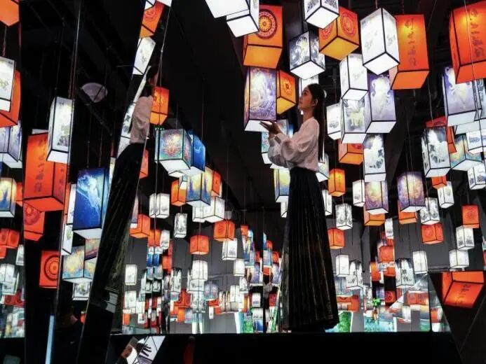 在東門城樓18個展廳構建《創(chuàng)世·山海經(jīng)》數(shù)字孿生平臺,運用8K沉浸式動畫、VR/AR技術實現(xiàn)古籍神獸“破卷而出”。鎮(zhèn)館之寶明代彩繪本《山海經(jīng)》通過AR掃描技術,使128只神獸以3D形態(tài)呈現(xiàn),配合5.1環(huán)繞聲效與互動投影,打造“一步一景一神話”的立體體驗空間。該平臺已累計吸引超1萬名游客深度體驗,帶動街區(qū)數(shù)字文創(chuàng)產(chǎn)品銷售額顯著增長,驗證了“數(shù)字技術+在地文化”的變現(xiàn)潛力。