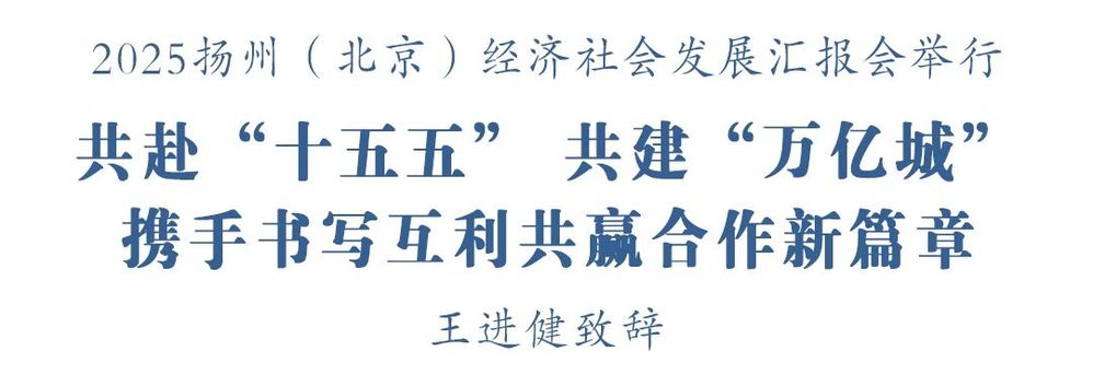 初冬北京,層林盡染。11月13日,2025揚(yáng)州(北京)經(jīng)濟(jì)社會發(fā)展匯報會在京舉行,全面展示揚(yáng)州開放發(fā)展最新成果,深度對接北京優(yōu)質(zhì)資源與創(chuàng)新力量,以奮進(jìn)之姿共赴“十五五”新征程,聚力推動揚(yáng)州高質(zhì)量邁入“萬億之城”,攜手書寫互利共贏合作新篇章。市委書記王進(jìn)健出席并致辭。